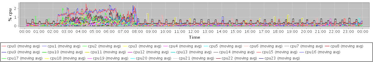 avg(cpu0) = 0.05 avg(cpu1) = 0.04 avg(cpu2) = 0.00 avg(cpu3) = 0.00 avg(cpu4) = 0.00 avg(cpu5) = 0.00 avg(cpu6) = 0.00 avg(cpu7) = 0.00 avg(cpu8) = 0.01 avg(cpu9) = 0.00 avg(cpu10) = 0.00 avg(cpu11) = 0.00 avg(cpu12) = 0.00 avg(cpu13) = 0.00 avg(cpu14) = 0.00 avg(cpu15) = 0.00 avg(cpu16) = 0.00 avg(cpu17) = 0.00 avg(cpu18) = 0.00 avg(cpu19) = 0.00 avg(cpu20) = 0.00 avg(cpu21) = 0.00 avg(cpu22) = 0.00 avg(cpu23) = 0.00