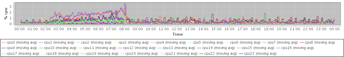 avg(cpu0) = 0.08 avg(cpu1) = 0.06 avg(cpu2) = 0.00 avg(cpu3) = 0.00 avg(cpu4) = 0.00 avg(cpu5) = 0.00 avg(cpu6) = 0.00 avg(cpu7) = 0.00 avg(cpu8) = 0.00 avg(cpu9) = 0.00 avg(cpu10) = 0.00 avg(cpu11) = 0.00 avg(cpu12) = 0.02 avg(cpu13) = 0.00 avg(cpu14) = 0.00 avg(cpu15) = 0.00 avg(cpu16) = 0.00 avg(cpu17) = 0.00 avg(cpu18) = 0.00 avg(cpu19) = 0.00 avg(cpu20) = 0.00 avg(cpu21) = 0.00 avg(cpu22) = 0.00 avg(cpu23) = 0.00