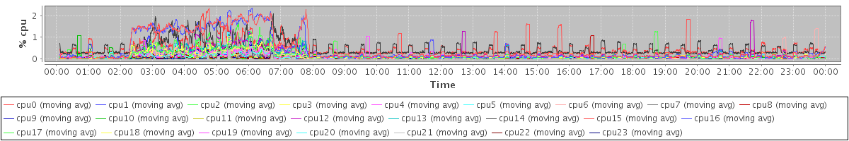 avg(cpu0) = 0.05 avg(cpu1) = 0.05 avg(cpu2) = 0.00 avg(cpu3) = 0.00 avg(cpu4) = 0.00 avg(cpu5) = 0.00 avg(cpu6) = 0.01 avg(cpu7) = 0.00 avg(cpu8) = 0.00 avg(cpu9) = 0.00 avg(cpu10) = 0.00 avg(cpu11) = 0.00 avg(cpu12) = 0.00 avg(cpu13) = 0.00 avg(cpu14) = 0.00 avg(cpu15) = 0.00 avg(cpu16) = 0.00 avg(cpu17) = 0.00 avg(cpu18) = 0.00 avg(cpu19) = 0.00 avg(cpu20) = 0.00 avg(cpu21) = 0.00 avg(cpu22) = 0.00 avg(cpu23) = 0.00