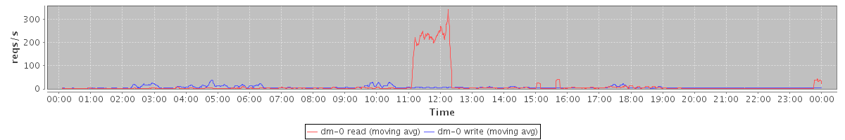 avg(dm-0 read) = 14.95 avg(dm-0 write) = 6.44