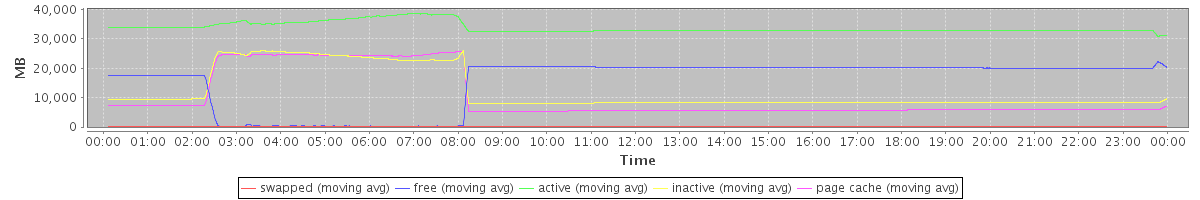 avg(swapped) = 23.98 avg(free) = 15232.91 avg(active) = 33845.93 avg(inactive) = 12258.81 avg(page cache) = 10398.75