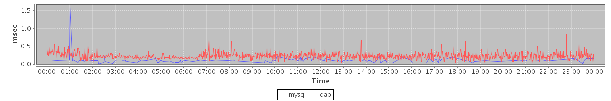 avg(mysql) = 0.23 avg(ldap) = 0.01