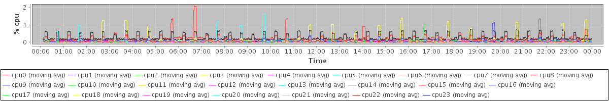 avg(cpu0) = 0.10 avg(cpu1) = 0.10 avg(cpu2) = 0.01 avg(cpu3) = 0.04 avg(cpu4) = 0.03 avg(cpu5) = 0.01 avg(cpu6) = 0.00 avg(cpu7) = 0.00 avg(cpu8) = 0.00 avg(cpu9) = 0.00 avg(cpu10) = 0.00 avg(cpu11) = 0.00 avg(cpu12) = 0.02 avg(cpu13) = 0.02 avg(cpu14) = 0.00 avg(cpu15) = 0.01 avg(cpu16) = 0.00 avg(cpu17) = 0.00 avg(cpu18) = 0.00 avg(cpu19) = 0.04 avg(cpu20) = 0.00 avg(cpu21) = 0.00 avg(cpu22) = 0.00 avg(cpu23) = 0.01