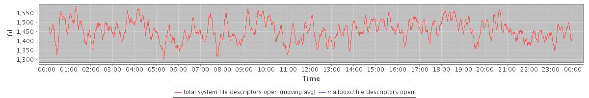 avg(total system file descriptors open) = 1455.35 avg(mailboxd file descriptors open) = 0.00