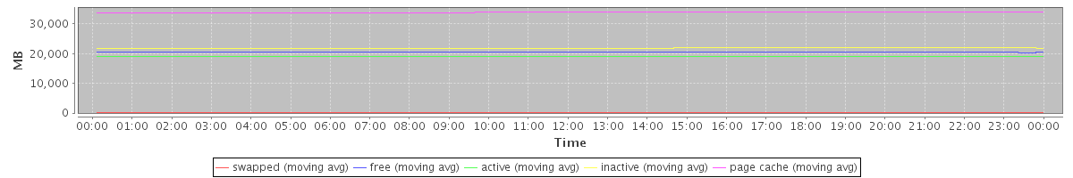 avg(swapped) = 9.31 avg(free) = 20461.42 avg(active) = 18943.80 avg(inactive) = 21843.10 avg(page cache) = 33848.28