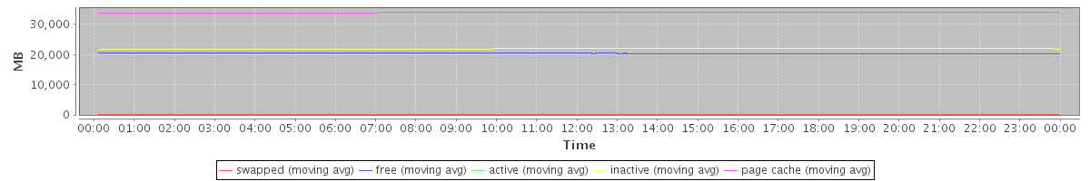 avg(swapped) = 9.31 avg(free) = 20380.41 avg(active) = 18984.62 avg(inactive) = 21876.71 avg(page cache) = 33881.49