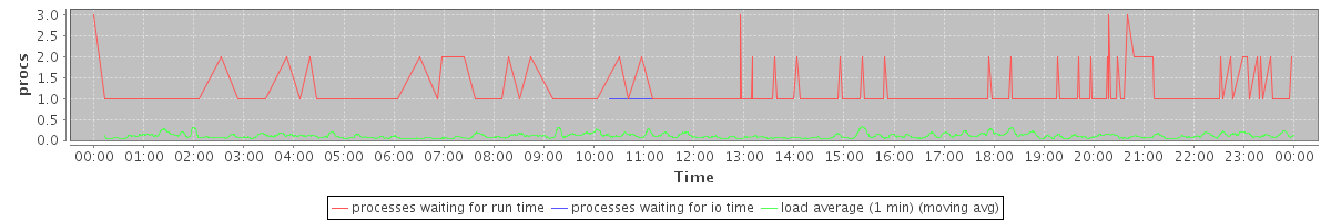 avg(processes waiting for run time) = 0.13 avg(processes waiting for io time) = 0.00 avg(load average (1 min)) = 0.10