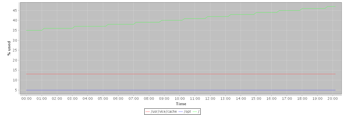 avg(/usr/vice/cache) = 13.00 avg(/opt) = 5.00 avg(/) = 40.59