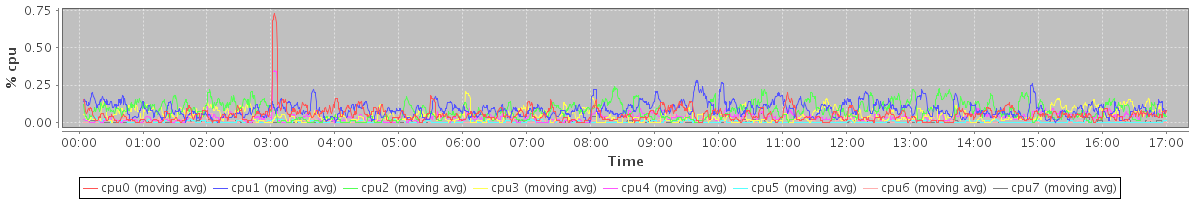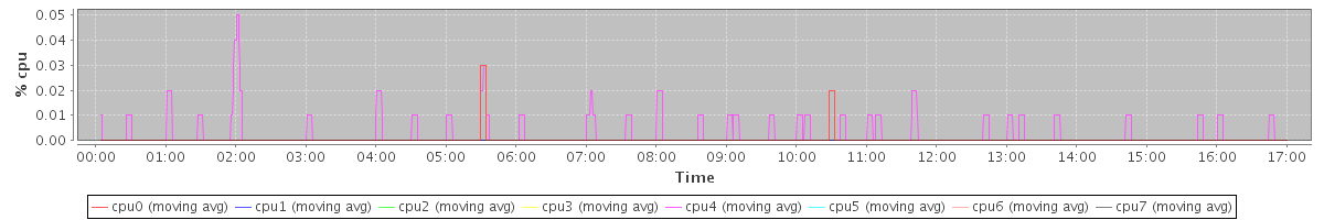avg(cpu0) = 0.05 avg(cpu1) = 0.08 avg(cpu2) = 0.08 avg(cpu3) = 0.05 avg(cpu4) = 0.03 avg(cpu5) = 0.00 avg(cpu6) = 0.01 avg(cpu7) = 0.00
