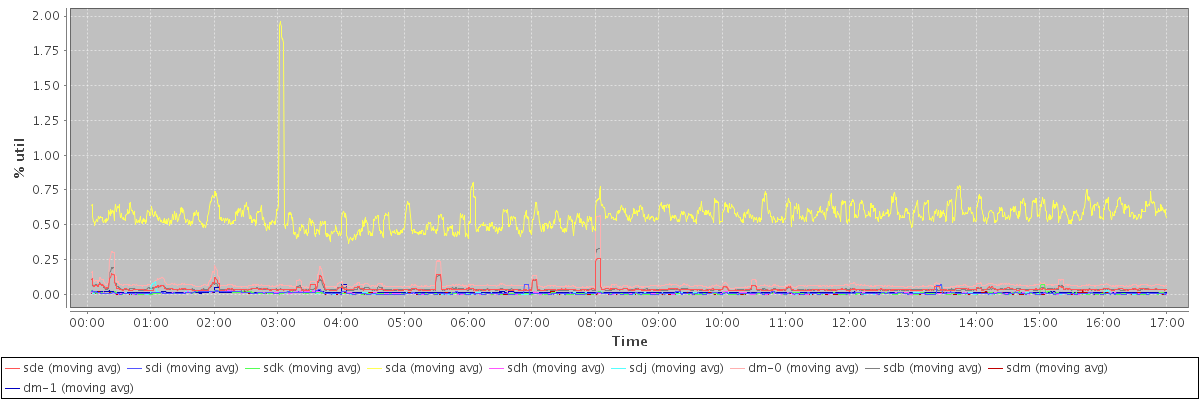 avg(sde) = 0.04 avg(sdi) = 0.01 avg(sdk) = 0.01 avg(sda) = 0.57 avg(sdh) = 0.01 avg(sdj) = 0.01 avg(dm-0) = 0.07 avg(sdb) = 0.04 avg(sdm) = 0.01 avg(dm-1) = 0.01