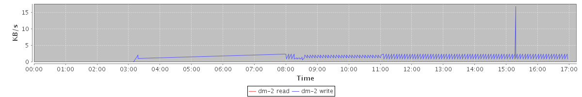 avg(dm-0 read) = 0.06 avg(dm-0 write) = 16.88