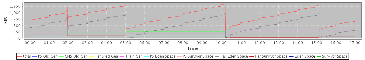 avg(total) = 856.59 avg(PS Old Gen) = 0.00 avg(CMS Old Gen) = 267.61 avg(Tenured Gen) = 0.00 avg(Train Gen) = 0.00 avg(PS Eden Space) = 0.00 avg(PS Survivor Space) = 0.00 avg(Par Eden Space) = 509.55 avg(Par Survivor Space) = 79.43 avg(Eden Space) = 0.00 avg(Survivor Space) = 0.00