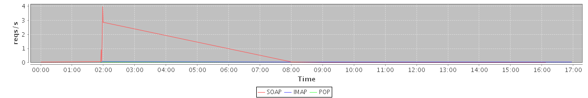 Host zm01-int.stanford.edu: Mailboxd: Request Rate by Client Protocol