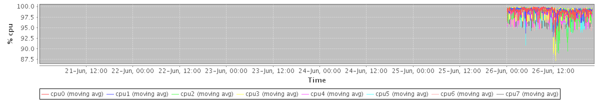 avg(cpu0) = 98.73 avg(cpu1) = 98.78 avg(cpu2) = 98.38 avg(cpu3) = 98.77 avg(cpu4) = 97.68 avg(cpu5) = 97.70 avg(cpu6) = 97.79 avg(cpu7) = 97.80