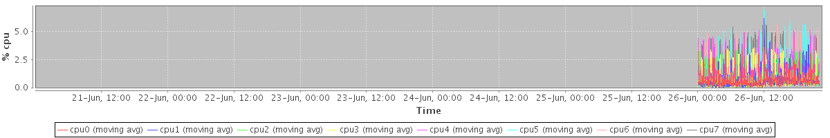avg(cpu0) = 0.10 avg(cpu1) = 0.15 avg(cpu2) = 0.12 avg(cpu3) = 0.11 avg(cpu4) = 0.28 avg(cpu5) = 0.25 avg(cpu6) = 0.24 avg(cpu7) = 0.26