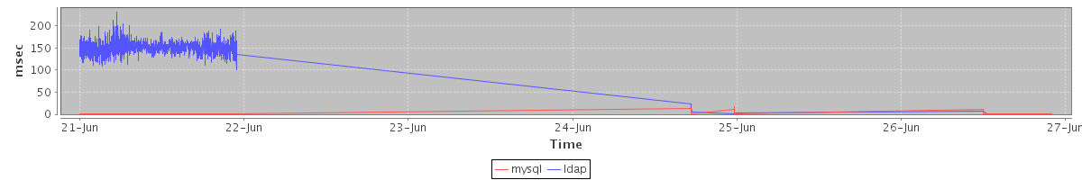 avg(mysql) = 0.22 avg(ldap) = 103.84