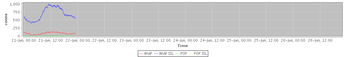 Host zm06.stanford.edu: Mailboxd: Active Connections by Client Protocol