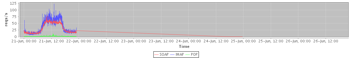 Host zm06.stanford.edu: Mailboxd: Request Rate by Client Protocol