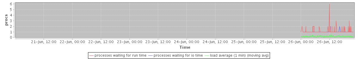 avg(processes waiting for run time) = 0.07 avg(processes waiting for io time) = 0.02 avg(load average (1 min)) = 0.18