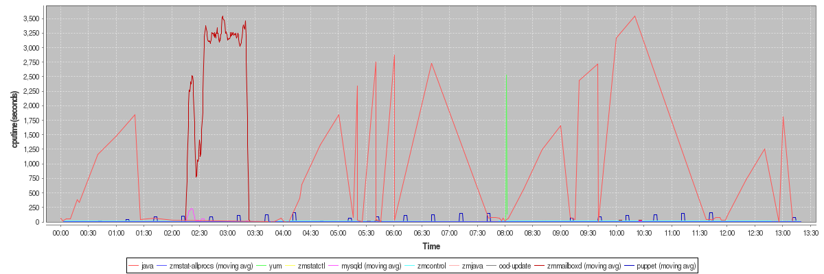 avg(java) = 544.38 avg(zmstat-allprocs) = 6.37 avg(yum) = 893.67 avg(zmstatctl) = 2.30 avg(mysqld) = 4.34 avg(zmcontrol) = 10.00 avg(zmjava) = 6.00 avg(ood-update) = 3.67 avg(zmmailboxd) = 232.00 avg(puppet) = 10.16