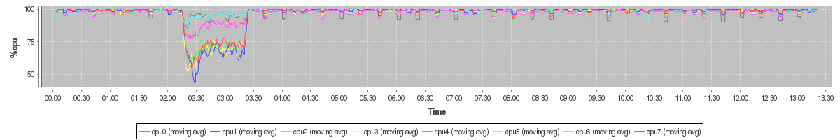avg(cpu0) = 96.69 avg(cpu1) = 96.23 avg(cpu2) = 96.73 avg(cpu3) = 96.28 avg(cpu4) = 97.03 avg(cpu5) = 97.88 avg(cpu6) = 97.36 avg(cpu7) = 97.71