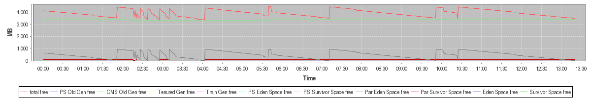 avg(total free) = 3914.76 avg(PS Old Gen free) = 0.00 avg(CMS Old Gen free) = 3347.69 avg(Tenured Gen free) = 0.00 avg(Train Gen free) = 0.00 avg(PS Eden Space free) = 0.00 avg(PS Survivor Space free) = 0.00 avg(Par Eden Space free) = 467.03 avg(Par Survivor Space free) = 100.05 avg(Eden Space free) = 0.00 avg(Survivor Space free) = 0.00