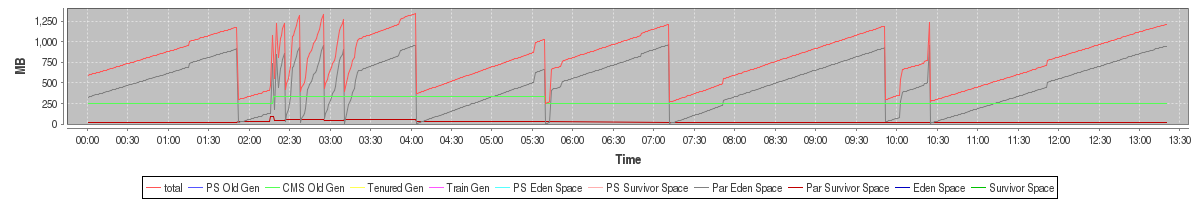 avg(total) = 788.74 avg(PS Old Gen) = 0.00 avg(CMS Old Gen) = 271.31 avg(Tenured Gen) = 0.00 avg(Train Gen) = 0.00 avg(PS Eden Space) = 0.00 avg(PS Survivor Space) = 0.00 avg(Par Eden Space) = 496.97 avg(Par Survivor Space) = 20.45 avg(Eden Space) = 0.00 avg(Survivor Space) = 0.00