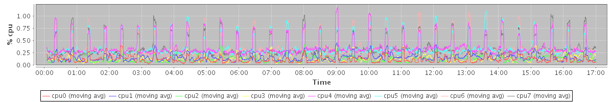 avg(cpu0) = 0.17 avg(cpu1) = 0.18 avg(cpu2) = 0.21 avg(cpu3) = 0.26 avg(cpu4) = 0.33 avg(cpu5) = 0.41 avg(cpu6) = 0.43 avg(cpu7) = 0.38