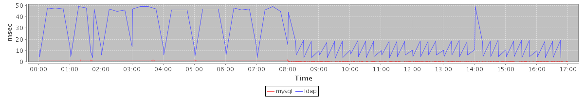 avg(mysql) = 0.42 avg(ldap) = 2.14