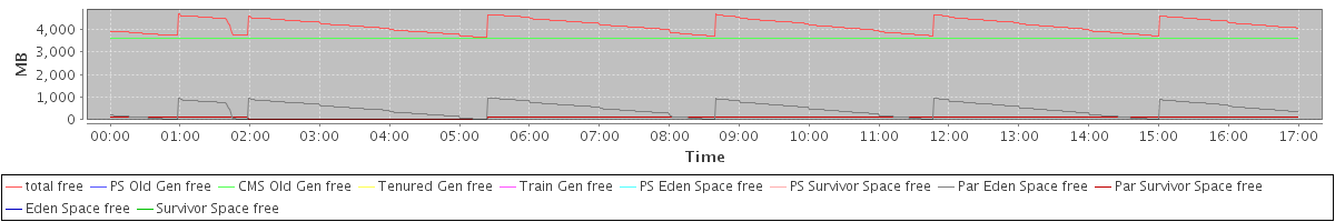 avg(total free) = 4169.12 avg(PS Old Gen free) = 0.00 avg(CMS Old Gen free) = 3602.21 avg(Tenured Gen free) = 0.00 avg(Train Gen free) = 0.00 avg(PS Eden Space free) = 0.00 avg(PS Survivor Space free) = 0.00 avg(Par Eden Space free) = 471.22 avg(Par Survivor Space free) = 95.69 avg(Eden Space free) = 0.00 avg(Survivor Space free) = 0.00
