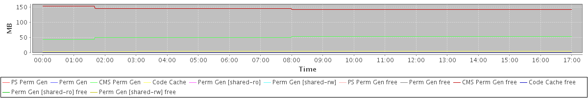 avg(PS Perm Gen) = 0.00 avg(Perm Gen) = 0.00 avg(CMS Perm Gen) = 51.36 avg(Code Cache) = 4.48 avg(Perm Gen [shared-ro]) = 0.00 avg(Perm Gen [shared-rw]) = 0.00 avg(PS Perm Gen free) = 0.00 avg(Perm Gen free) = 0.00 avg(CMS Perm Gen free) = 144.64 avg(Code Cache free) = 0.13 avg(Perm Gen [shared-ro] free) = 0.00 avg(Perm Gen [shared-rw] free) = 0.00