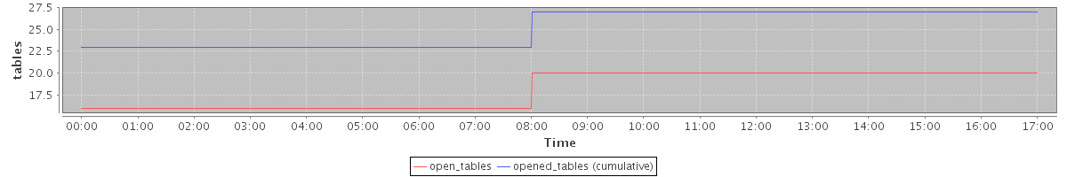 avg(open_tables) = 18.12 avg(opened_tables (cumulative)) = 25.12