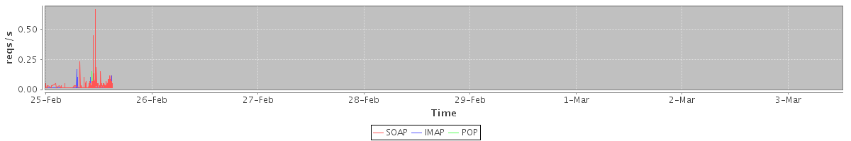 Host zm03.stanford.edu: Mailboxd: Request Rate by Client Protocol
