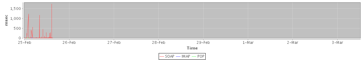 max(GetMsgRequest) = 21.00 max(GetEffectiveFolderPermsRequest) = 8.00 max(GetFolderRequest) = 10.00 max(SearchRequest) = 5.00 max(BackupRequest) = 1.00 max(FlushCacheRequest) = 1.00 max(GetFreeBusyRequest) = 1.00 max(GetMiniCalRequest) = 4.00 max(AuthRequest) = 1.00 max(GetDomainInfoRequest) = 21.00