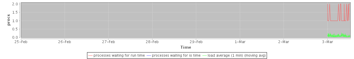 avg(processes waiting for run time) = 0.04 avg(processes waiting for io time) = 0.00 avg(load average (1 min)) = 0.08