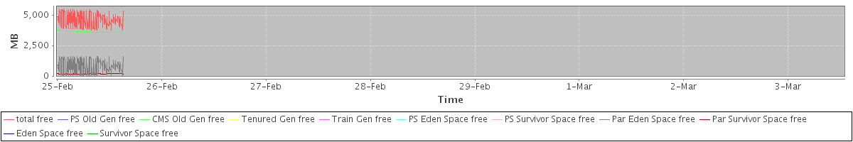 avg(total free) = 4575.76 avg(PS Old Gen free) = 0.00 avg(CMS Old Gen free) = 3622.27 avg(Tenured Gen free) = 0.00 avg(Train Gen free) = 0.00 avg(PS Eden Space free) = 0.00 avg(PS Survivor Space free) = 0.00 avg(Par Eden Space free) = 782.93 avg(Par Survivor Space free) = 170.57 avg(Eden Space free) = 0.00 avg(Survivor Space free) = 0.00