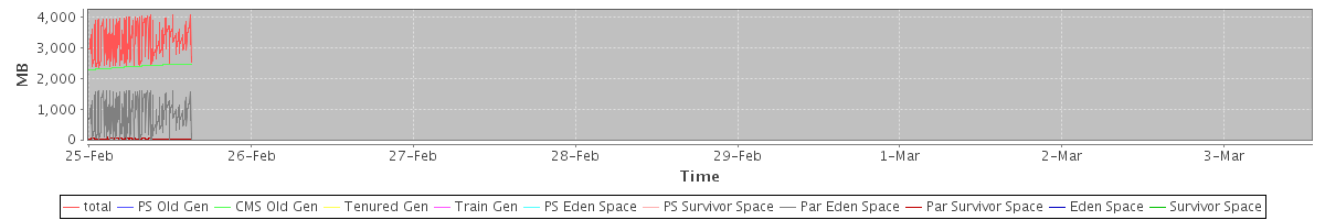 avg(total) = 3251.55 avg(PS Old Gen) = 0.00 avg(CMS Old Gen) = 2398.73 avg(Tenured Gen) = 0.00 avg(Train Gen) = 0.00 avg(PS Eden Space) = 0.00 avg(PS Survivor Space) = 0.00 avg(Par Eden Space) = 822.70 avg(Par Survivor Space) = 30.12 avg(Eden Space) = 0.00 avg(Survivor Space) = 0.00
