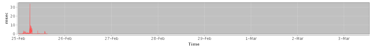 avg(BackupQueryRequest) = 463.00 avg(GetAggregateQuotaUsageOnServerRequest) = 829.00 avg(GetFreeBusyRequest) = 803.82 avg(AutoCompleteRequest) = 1751.00 avg(GetFolderRequest) = 219.91 avg(GetShareInfoRequest) = 494.00 avg(CheckRecurConflictsRequest) = 494.75 avg(CreateAppointmentRequest) = 430.00 avg(SearchCalendarResourcesRequest) = 255.00 avg(GetQuotaUsageRequest) = 1021.00