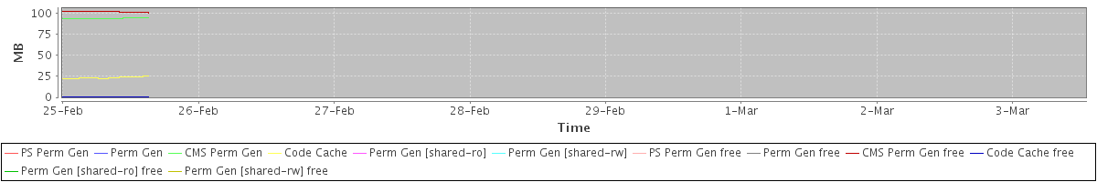 avg(PS Perm Gen) = 0.00 avg(Perm Gen) = 0.00 avg(CMS Perm Gen) = 93.97 avg(Code Cache) = 23.54 avg(Perm Gen [shared-ro]) = 0.00 avg(Perm Gen [shared-rw]) = 0.00 avg(PS Perm Gen free) = 0.00 avg(Perm Gen free) = 0.00 avg(CMS Perm Gen free) = 102.03 avg(Code Cache free) = 0.34 avg(Perm Gen [shared-ro] free) = 0.00 avg(Perm Gen [shared-rw] free) = 0.00