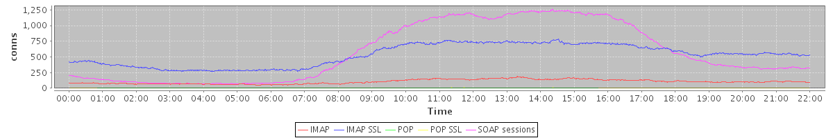 avg(IMAP) = 103.37 avg(IMAP SSL) = 527.69 avg(POP) = 0.03 avg(POP SSL) = 1.38 avg(SOAP sessions) = 573.06