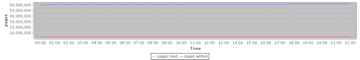 avg(pages read) = 3016664.31 avg(pages written) = 60741411.90