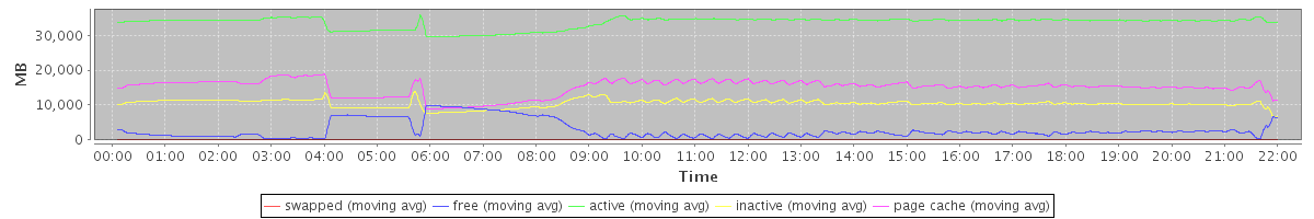 avg(swapped) = 78.63 avg(free) = 2881.76 avg(active) = 33569.93 avg(inactive) = 10423.21 avg(page cache) = 15003.48