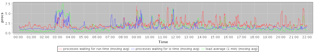 avg(processes waiting for run time) = 1.65 avg(processes waiting for io time) = 0.63 avg(load average (1 min)) = 1.75