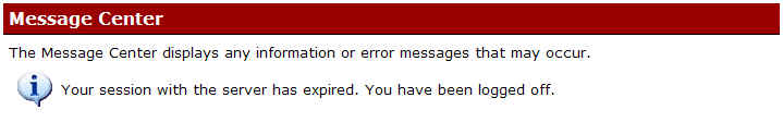 In the Connect Message Center, I get this message: " "Your session with the server has expired. You have been logged off."
