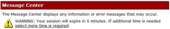 - In the Connect Message Center, I get this warning message: "Your session will expire in x minutes. If additional time is needed select more time is required."