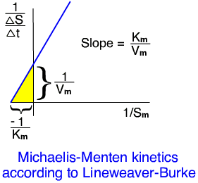 versus 1/Sm produces a straight line with slope Km/Vm and a y-intercept at 1/Vm.