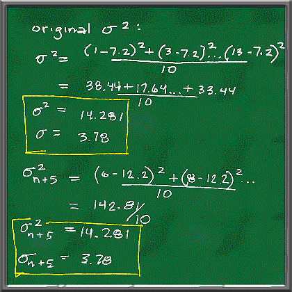Does adding a constant to the values of the individuals in a population have an effect upon the Standard Deviation and Variance? Logically, we can surmise that a uniform change to the members of a population should have no effect upon their deviation from the Mean.