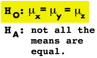 For a single-factor ANOVAwe are significance testing for the equivalency of multiple population Means. The general Null Hypothesis for these types of ANOVAs are: