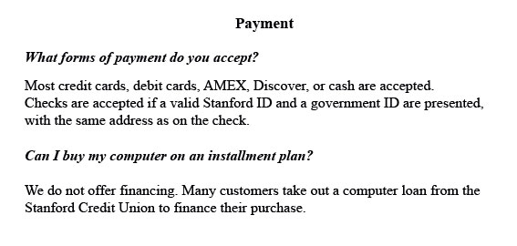 - drop by our store and buy in person - shop online - phone: 650-329-1217, ext. 456 - fax: 650-325-3476 (prefix required when faxing) - email: computers@bookstore.stanford.org