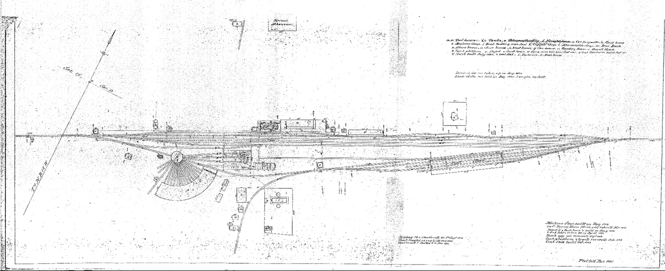 32 Arthur Haig, “Central Pacific Railroad, Nevada and Utah Station Plan Book, ca. 1880s,” MS 79, Central Pacific Railroad Collection RG 3 Land Department Records, 1983, California State Railroad Museum Library, Sacramento. While a date of 1880 is assigned to the title of this manuscript, the contents of the book suggest that the material dates to the early to mid-1880s. The “author,” Arthur Haig, was the person who donated the manuscript to the Central Pacific Railroad Museum Library. The actual authorship of the many maps in the manuscript is probably the engineering department of the CPRR. It survived the fire of 1906 which destroyed most of the CPRR/Southern Pacific records and only became known when Arthur Haig donated the book to the California State Railroad Museum Library in 1983. How Mr. Haig may have been associated with the railroad and how he acquired the book is not known.